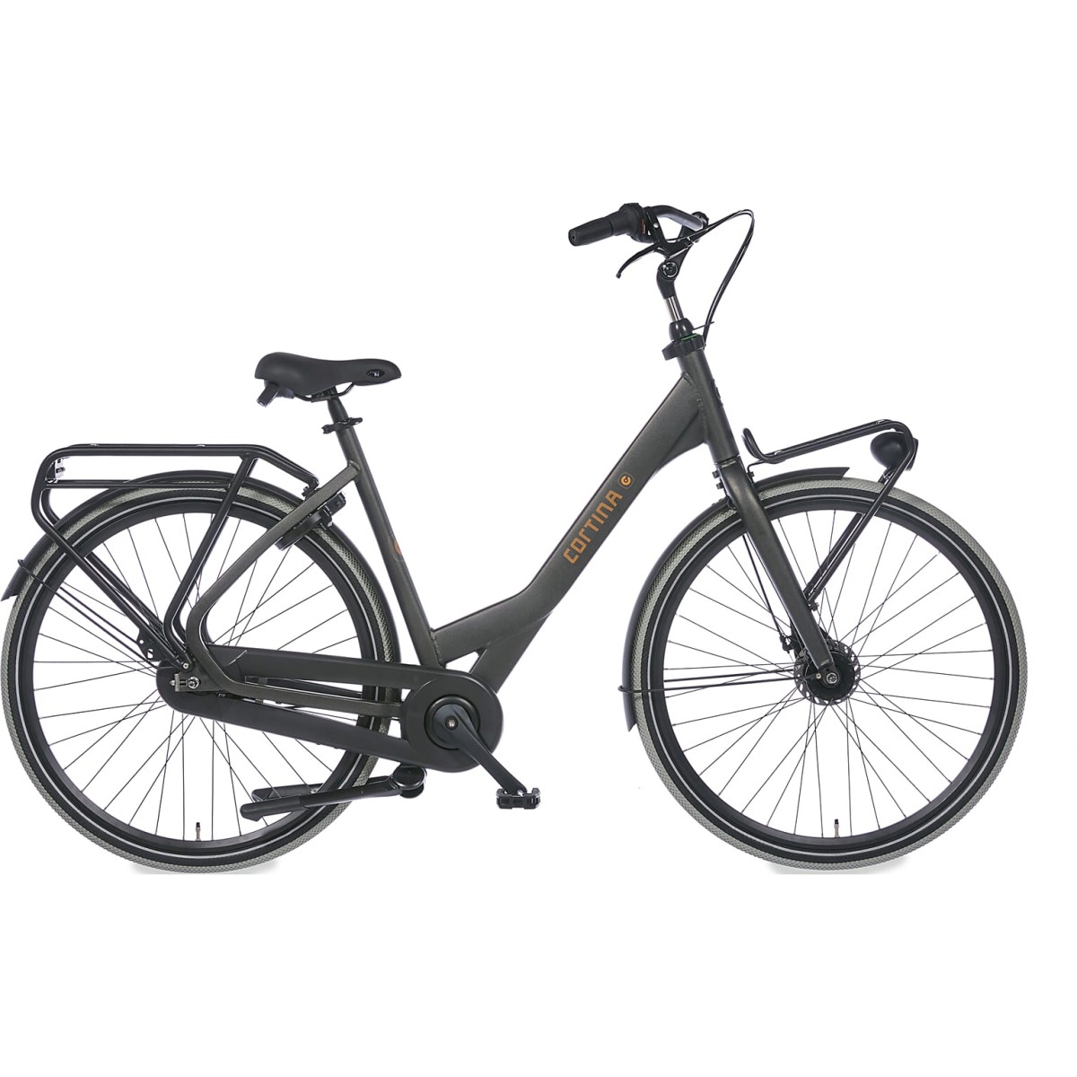 Cortina Common Family 57cm, Black Gold Matt, Shimano Nexus 7 versnellingsnaaf, Rollerbrakes voor en achter. Kleurnummer: MZZ 28357 Matt.
